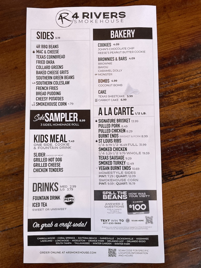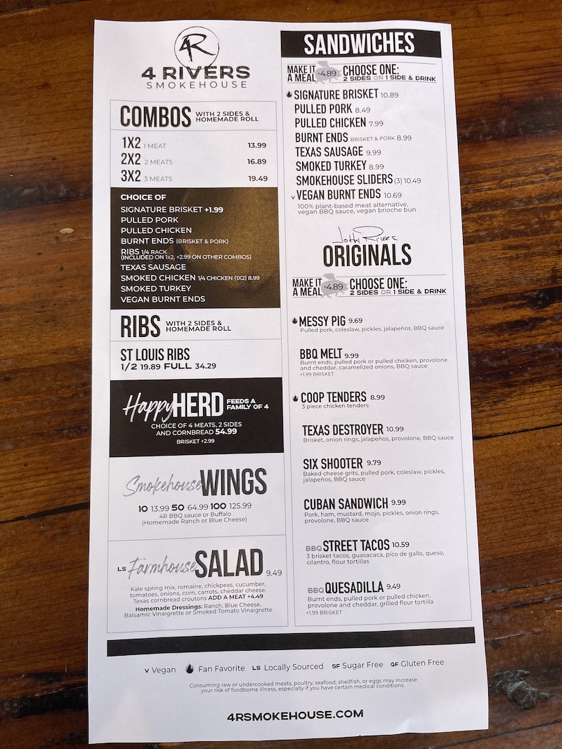 Looking for the latest 4 Rivers Smokehouse menu with prices? See updated photos, pricing details, and our full review: